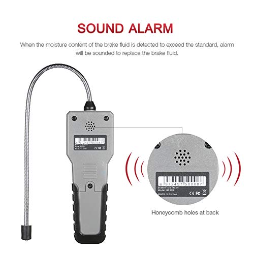 ♥♥♥ Eenvoudig direct aflezen en alarmeren: zeer gevoelige sonde + display met hoge resolutie + akoestisch alarm, het resultaat toont resultaat, groot display met achtergrondverlichting, eenvoudig en duidelijk aflezen onder zon of nacht. Nooit beperkt door het milieu. Zodra remvloeistof met te veel wateralarm klinkt, wordt er aan herinnerd dat je de remvloeistof moet vervangen.